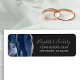 Le bord gauche de cette élégante étiquette d'adresse de retour de faire-part de mariage moderne comporte une bordure en aquarelle bleu marine, ornée d'une parties scintillant en faux argent. Le texte personnalisable combine écriture manuscrite gris argent clair et polices de cuivre sur un arrière - plan gris charbon foncé.