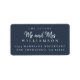 Mariage chic, moderne et simple étiquette d'adresse de retour avec le texte le futur M et Mme en blanc manuscrit élégant calligraphie sur un arrière - plan bleu foncé. Il vous suffit d'ajouter votre nom et votre adresse à tous vos courriels mariages tels que les invitations à un mariage, les enveloppes RSVP et de sauvegarder la date ou les cadeaux de mariage. Conçu exclusivement pour vous par Happy Dolphin Studio. Si vous avez besoin d'aide ou de produits correspondants, veuillez nous contacter à happydolphinstudio@outlook.com . Nous sommes heureux de vous aider à faire de votre mariage la plus belle journée!