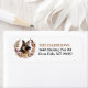 Le côté gauche de ces étiquettes d'adresse de retour comporte le portrait d'un beau chien berger allemand. L'image est enfermée dans une jolie couronne de fleurs et de feuilles d'automne dans les tons brun, tan et crème. Votre texte personnalisé est en noir et or brun à droite.