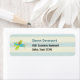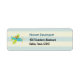 Étiquettes de adresse avec un thème d'enfant mignon pépinière illustration d'une petite course de chiens dans un avion de jouets. Placé sur un arrière - plan rayé crème et bleu.