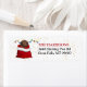 Ces étiquettes d'adresse de retour de vacances ont l'image d'un adorable chiot brun Labrador Retriever dans un sac cadeau de Noël rouge et blanc. Derrière le chien se trouve une série de lumières colorées de Noël. Votre texte personnalisé est en rouge et noir à droite. Un subtil arrière - plan de confettis d'or donne un peu d'éclat de Noël.