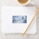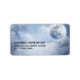 Étiquettes de adresse avec un ciel d'imaginaire magique avec des nuages bleus fluides et une grande belle lune. 2 cygnes blancs qui volent ensemble.