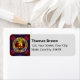 Clan Brown crête badge entouré d'une sangle et boucle sur l'arrière - plan tartan. Champs de texte personnalisés pour le nom et l'adresse.
