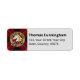 Clan Cunningham crête badge entouré d'une sangle et boucle sur l'arrière - plan tartan. Champs de texte personnalisés pour le nom et l'adresse.
