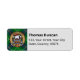 Clan Duncan crest badge surrounded by a strap and buckle over tartan background. Custom text fields for name and address.