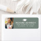 Élégante étiquette d'adresse de retour de graduation blanche Photo avec un casquette de grade vert et le nom et l'adresse du diplômé dans le moderne.