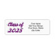 Étiquette de l'adresse de retour avec classe 2025 en texte violet 3D.