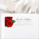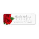 Classic Red Rose Elegant Script Return Address Label. Add a touch of timeless romance to your wedding correspondence with these elegant red rose return address labels. Featuring a stunning cluster of deep red roses and lush green leaves on the left side, these labels offer a beautiful contrast to the clean, white background. The right side showcases your custom names in a sophisticated, flowing script typography, followed by your address in a classic, legible serif font. Perfect for couples who adore romantic floral motifs and a touch of classic charm, these chic labels will make a memorable impression on save-the-dates, wedding invitations, and wedding thank you cards. Ensure your mail is as beautifully presented as your special day with these exquisite wedding address labels. Let these gorgeous red roses make a statement on every envelope.