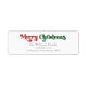 Célébrez la saison avec cette étiquette unique et classique d'adresse de retour Joyeux Noël avec une touche de charme vintage. Le design minimaliste présente une élégante palette de couleurs rouge et verte, évoquant l'esprit cosy de l'hiver. Son attrait moderne et ludique, associé à la formulation traditionnelle, crée un équilibre parfait entre audace et classe. La typographie mignonne et ludique, dans un style de lettrage soigné et minimaliste, apporte une touche contemporaine. Partagez la joie et le bonheur des vacances avec cette salutation joyeuse et élégante!