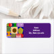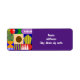 Ces étiquettes d'adresse de retour ont un design Bauhaus de formes et de lignes faisant un collage dans les couleurs primaires et secondaires.