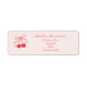 Coquette Rétro Cerise Rouge et Rose Adresse de Retour avec des cerises de style dessinées à la main avec un nœud. Le nom et l'adresse sont dans une police manuscrite rouge.