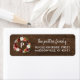 Étiquettes d'adresse de retour personnalisées avec votre monogramme de famille, votre nom et votre adresse. Le design présente une couronne de fleurs et de plumes aquarelles bohèmes dans des couleurs automnales rustiques sur un fond imitation grain de bois. Utilisez les outils de conception pour changer la couleur de fond et les polices pour personnaliser davantage votre propre design unique. Parfait pour un mariage automnal, une baby shower, des invitations de Thanksgiving ou simplement pour rendre votre courrier un peu plus festif cet automne !