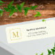 This cream luxury personalized address label features a gold serif monogram with black custom text, creating an elegant return address design. The neutral background gives envelopes a refined and cohesive look.