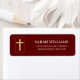 Partagez la joie de la 1ère sainte communion de votre enfant en invitant vos amis et votre famille au service ou à la réception et envoyez votre invitation à la communion avec cette élégante étiquette d'adresse de retour pour la première sainte communion d'un garçon. Cette étiquette d'adresse de retour comporte un riche arrière - plan rouge bordeaux avec une belle croix d'or qui a un cadre doré. Personnalisez avec votre nom et votre adresse pour plus de commodité.