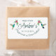 This pretty customizable label is featuring hummingbirds and 4 o'clock flowers on an aqua blue background. The font size and font style can be changed by clicking on "Edit using design tool". All hummingbird images are taken from original watercolors by C. Dobbins.