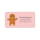 Laissez-vous expédier des étiquettes y passer un Noël et une ambiance festive avec ce mignon et heureux homme en pain d'épices, avec des gouttes de gomme rouge et du glaçage blanc. Arrière - plan de coeurs roses et de cercles blancs. Un étiquette d'expédition joyeux et délicieux !