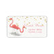 Étiquette Cute Flamingos, White,Faux Gold Foil Confetti