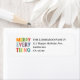 Holiday address labels feature "MERRY EVERYTHING" in bright, festive design with bold colors and cheerful typography, with modern black return address . The perfect addition to your Christmas, Hannukah and Holiday Correspondence.