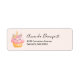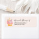 Étiquettes de adresse avec un dessin d'aquarelle d'un cupcake avec glaçage rose, une corne de licorne et des roses colorés.