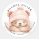 Autocollant d'étiquette d'adresse Baby Shower ourson mignon pour une baby shower de fille et une annonce de naissance.