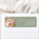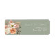 Étiquette d'adresse de retour de mariage élégante avec un fond vert sauge et un design floral aquarelle doux en pêche, crème et rose. Parfait pour sceller les enveloppes de votre suite de mariage rustique ou bohème. S'harmonise parfaitement avec les invitations et les cartes de détails assorties.