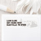 Ceci est une étiquette d'adresse de retour monochrome avec un thème western. Le design comprend un chapeau de cow-boy proéminent, un cactus saguaro et une chaîne de montagnes en arrière-plan. Avec un espace pour ajouter un nom et une adresse de retour imprimés dans une police gras sans empattement. L'esthétique globale est rustique, inspirée de la campagne et de l'Ouest américain.