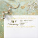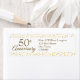 Étiquette d'adresse de retour pour noces d'or 50e anniversaire avec vos coordonnées en élégant texte blanc sur fond de cœurs dorés. Conçue par Thisisnotme©