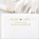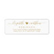 Étiquettes d'adresse de retour de couple élégantes et modernes en or et blanc avec lettrage à la main. Caractéristiques d'un joli modèle de nom de famille et de prénom de couple en écriture manuscrite avec une police à queue en noir, un petit cœur entre les noms sur fond blanc. Facile à personnaliser avec vos noms et informations d'adresse de retour.