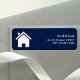 Élégantes étiquettes d'adresse de retour comportant une icône d'accueil mignonne contre un arrière - plan bleu foncé.