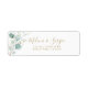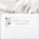 Complétez votre événement de mariage classique avec cette étiquette d'adresse de retour de mariage au eucalyptus vert et or. Le design présente des feuilles d'eucalyptus vertes et dorées à l'aquarelle élégante.