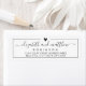 Étiquettes d'adresse de retour de mariage élégantes et modernes en noir et blanc avec lettrage à la main. Caractérisées par un modèle de noms de mariés à l'écriture manuscrite jolie avec une police à queue en noir, un petit cœur en haut, entouré d'un fin cadre sur fond blanc. Facile à personnaliser avec vos noms et informations d'adresse de retour.