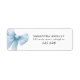 Ajoutez une touche douce et élégante à votre correspondance de mariage avec cette étiquette d'adresse de retour Coquette Blue Bow. Caractérisée par un délicat ruban bleu pastel et une typographie classique, cette étiquette se marie parfaitement avec les cartes de remerciement, les invitations et les enveloppes de cadeaux. Parfaite pour créer un détail de finition soigné et féminin qui reflète le thème doux et élégant de votre mariage.
