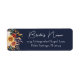 Étiquettes d'adresse de retour pour invitation de mariage floral bleu marine automnal.