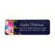 Étiquettes d'adresse de retour de mariage à la craie marine fleuri rose bohème moderne avec lettrage manuscrit. Caractéristiques d'un modèle de nom de script manuscrit joli et d'un arrangement floral aquarelle rose sur fond de tableau noir marine. Facile à personnaliser avec vos noms et informations d'adresse de retour. Ces étiquettes d'adresse de retour féminines sont idéales pour un mariage, une douche de mariée, un anniversaire ou toute occasion.