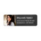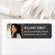 La conception d'étiquette d'adresse personnalisée comprend une photo de senior du diplômé avec un texte d'adresse de retour blanc moderne et un fond avec une apparence texturée de tableau noir rustique.