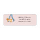 Dame promenant son chien, aquarelle mignonne, étiquette d'adresse de retour illustrée sur un fond rose doux.