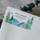 Ces étiquettes d'adresse de retour de Rocky Mountain sont parfaites pour un mariage en plein air. Le design présente un paysage sauvage peint en bleu et vert avec des arbres à feuilles persistantes, des oiseaux et des montagnes à l'aquarelle. Ces étiquettes peuvent être utilisées pour un mariage, une douche de mariée, un événement spécial ou chaque fois que vous avez besoin d'une étiquette d'adresse personnelle.
