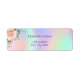 Fond holographique de couleur rose, violet, vert menthe. Une rose en or rose et rose blush, fleurs et verdure d'eucalyptus et feuillage doré faux. Personnalisez et ajoutez votre nom et adresse. Lettres blanches.
