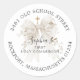 Un beau ruban blanc avec des roses décore cette élégante étiquette d'adresse de retour ronde de première sainte communion.