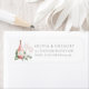 Conçue pour correspondre à notre collection de faire-part de mariage Cheers to Love, les étiquettes d'adresse de retour présentent une bouteille de vin rosé et deux verres à vin sur un lit de feuilles d'eucalyptus aquarelles vertes et de feuillage botanique.