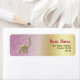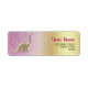 Silhouette de dinosaure en feuille d'or adorable combinée à un fond rose et or ombré, brillant et pailleté. Étiquette d'adresse de retour tendance, girly, douce et fantaisiste. Choix parfait pour les anniversaires d'enfants.
