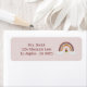 Des étiquettes d'adresse de retour mignonnes pour les éducateurs représentant une petite chouette debout sur un livre sous un arc-en-ciel. Personnalisez-les avec le nom de l'enseignant et l'adresse de l'école.