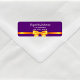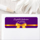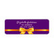 Étiquette d'adresse de retour de style élégant, classique, glamour et féminin. Un ruban et un nœud dorés. Un fond violet féminin élégant. Modèles pour le nom et l'adresse. Lettres de couleur or rose.