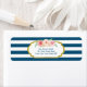 Étiquettes d'adresse de retour personnalisées en bleu marine classique et rayures blanches motif avec fleurs vintages roses d'aquarelle et détails or. Parfait pour les mariages, baby showers, douches nuptiales, fête d'anniversaire ou pour ajouter une touche personnelle à vos mailings.