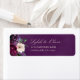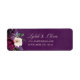 Fleurs romantiques dans les tons riches bordeaux, lilas doux, violet d'aubergine profonde et une paire d'orchidées rosâtre avec des plantes vertes modernes comme les fougères et l'eucalyptus. Un arrière - plan d'aquarelle violet d'aubergine profonde le cravate tout avec une typographie élégante dans ces étiquettes d'adresse de retour romantique.