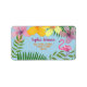 Étiquette d'adresse de retour de luau colorée et tropicale avec fleurs aquarelles, palmiers et flamant rose, choix parfait pour le premier anniversaire d'une fille en été.