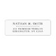Étiquette d'adresse de retour minimaliste en noir et blanc et qui peut être customisée pour inclure votre nom et adresse. Le nom et l'adresse sont séparés par une simple ligne décorative.