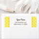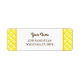 Étiquettes d'adresse de retour modifiables avec script rétro brun et lettres de bloc sur un plaid jaune et blanc avec une touche d'orange doré et un minuscule fil de vert sauge.