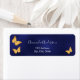 Papillons dorés sur fond bleu marine. La couleur bleue est inégale. Personnalisez et ajoutez votre nom et adresse. Parfait pour les invitations de mariage, baby shower ou fête d'anniversaire.