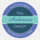 Personnalisez cette étiquette d'adresse de retour ronde bleue, turquoise et blanche avec votre nom et adresse. Cliquez sur « Personnaliser » pour changer les couleurs et les styles de police.